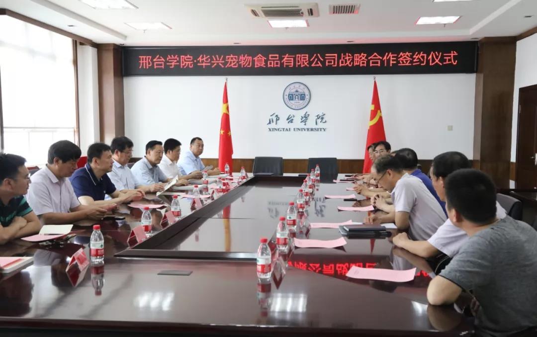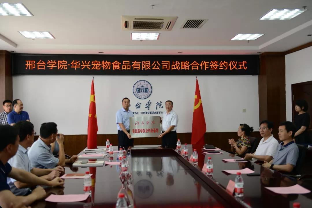 上午11時30分整,華興寵物食品有限公司總經(jīng)理冀葉軍與邢臺學院校長蔡振禹在戰(zhàn)略合作書上簽字,隨后由蔡校長代表邢臺學院進行授牌儀式,授予華興寵物食品有限公司“實踐教學就業(yè)創(chuàng)業(yè)基地”,標志著華興寵物食品有限公司和邢臺學院的戰(zhàn)略合作全面開始。